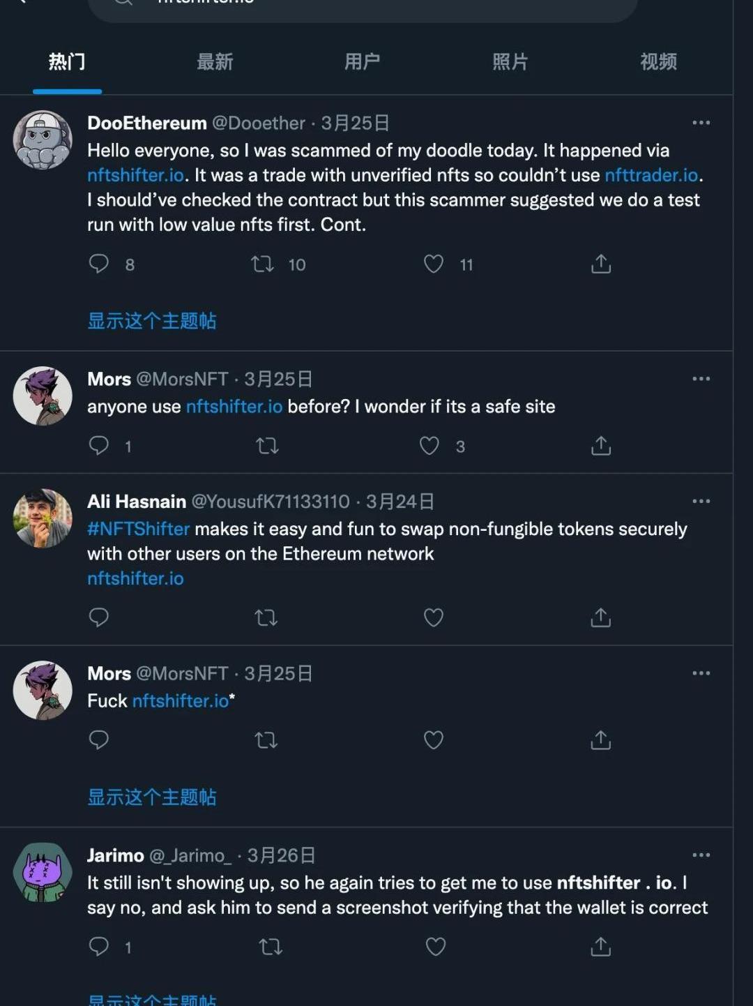 在Twitter上查找相關記錄可以看到2022年3月25日有受害者訪問過該釣魚網站并公布出來。