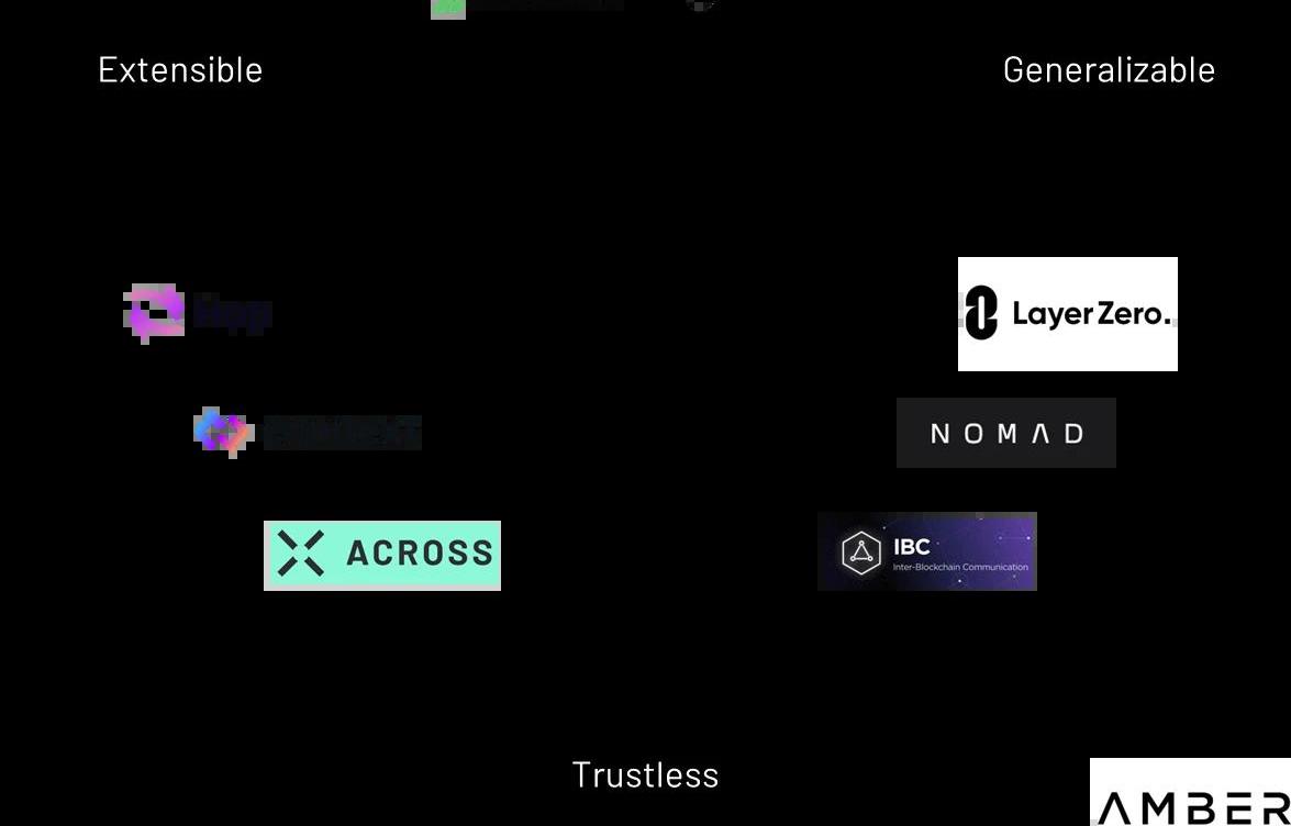 盡管有數十種跨鏈橋的架構設計,但沒有一個跨鏈橋能擁有“互操作性三難困境”的所有三個屬性。互操作性三難困境是ArjunBhuptani提出的一個術語,它指出跨鏈橋只能具有以下三個屬性中的兩個:通用性、可擴展性和無須信任性。1.通用性:在兩條鏈之間傳遞任意數據的能力2.可擴展性:在異構鏈上快速部署的能力3.無須信任性:最小化信任假設
