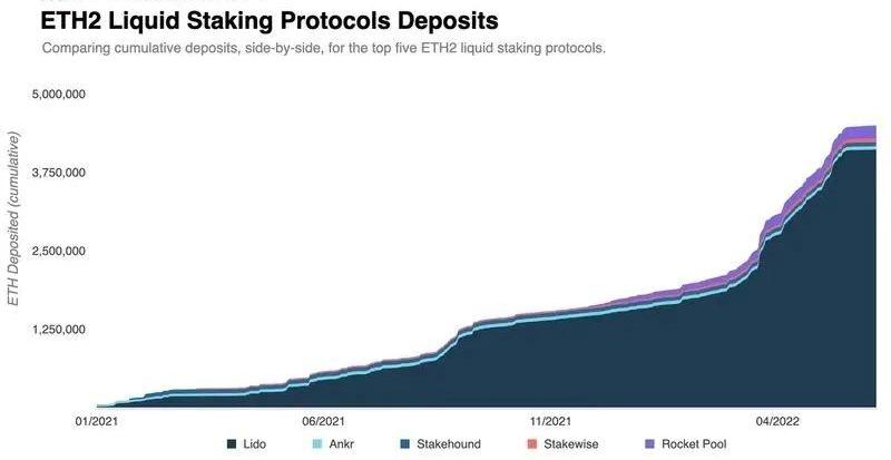 5月初,Lido短暫地超過了Curve,成為TVL金額最大的DeFi協議。自從UST脫鉤后,Lido的總體TVL排名一直在第四名左右。