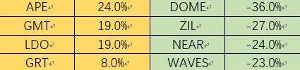 BTC下跌5%,市場跟隨下跌。場外新增資金缺乏,場內存量資金博弈,表現較好的為中等市值的新幣。NFT、鏈游等板塊強者恒強。APE即將推出元宇宙,并開始售賣土地,將以APE而非ETH作為交易貨幣超預期。GMT本周修改規則,再次加大對GMT的消耗,對GMT具有一定的價格支撐,并新上了Coinbase。整體下跌市場里,公鏈幣難有機會,ZIL、NEAR、WAVES等跟隨市場大幅下跌。