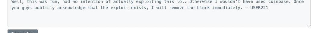 4.這個漏洞被人在鏈上證明有效,但隨后攻擊合約便進行了解鎖,并沒有進行攻擊利用,且公開進行了申明。