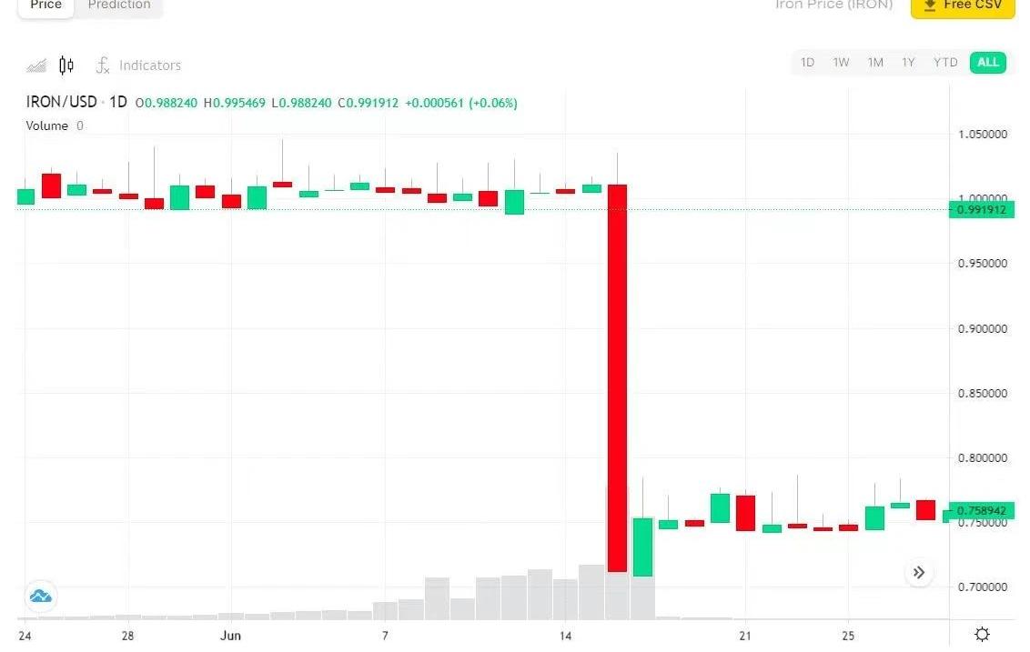 2021年6月IRON價格跌至0.75美元左右Terra脫錨場景