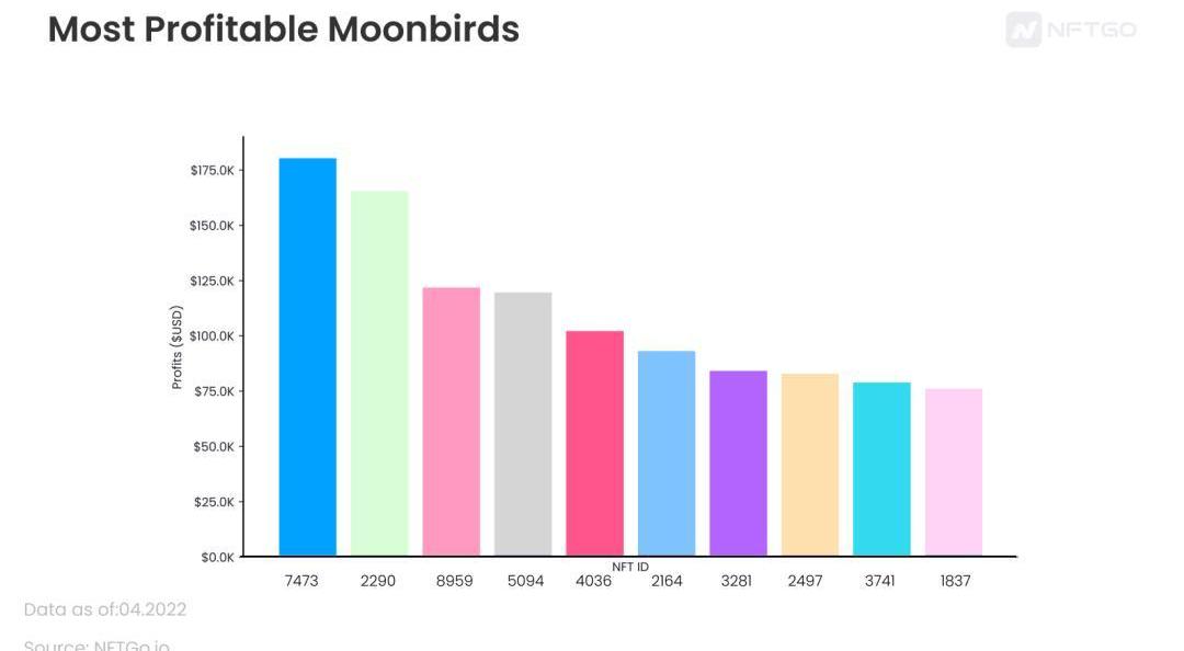 Moonbirds最高收益用戶畫像;數據來源NFTGo.io,2022.4.19