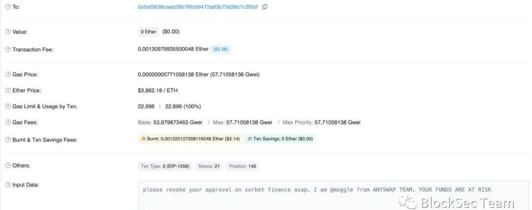 在交易0xd360**中,攻擊者回復: