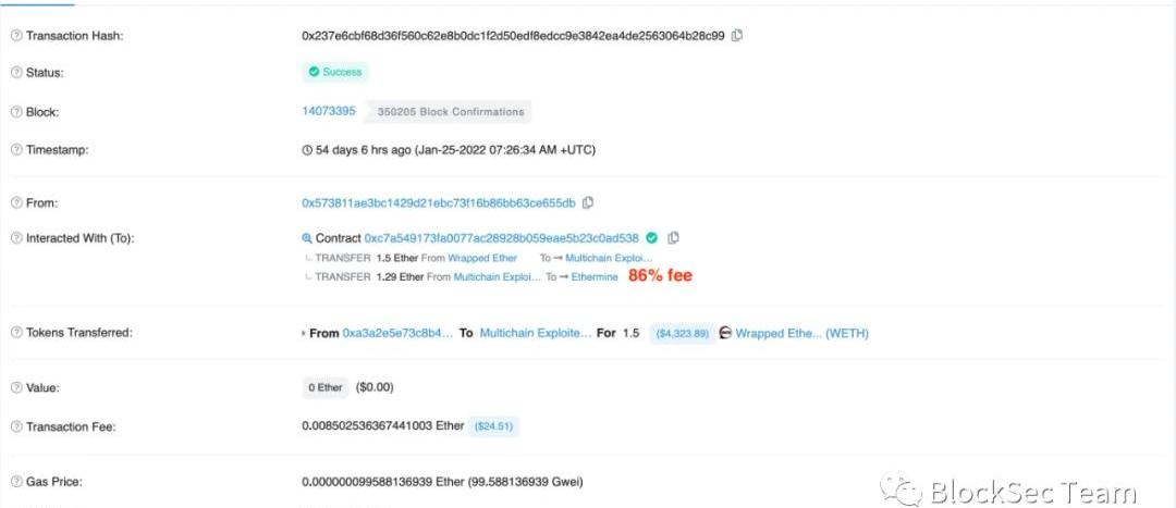識別白帽及其行為可能并不像一般人認為的那樣簡單直白。舉例來說,賬戶地址0xfa27被Etherscan.io標記為白帽:MultichainExploiter4(Whitehat)。然而在一開始的時候,這個地址被標記為攻擊者:MultichainExploiter4。這里的變化來自于項目方和攻擊者的互動,在若干輪協商之后,攻擊者同意保留50ETH的獲利作為獎賞,返還其它獲利:在交易0x3c3d**中,項目方聯系該攻擊者:
