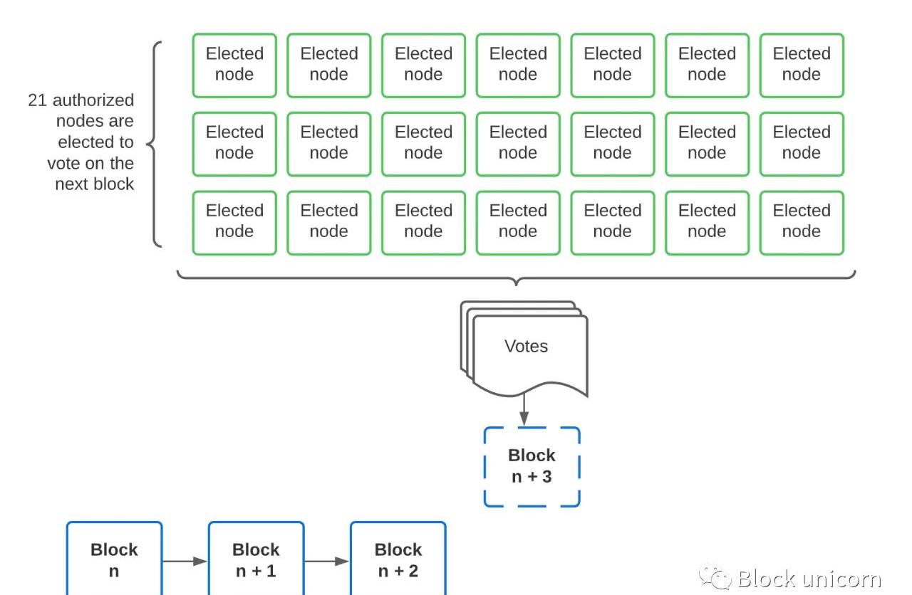三角形右邊是典型的高TPS鏈,比如幣安智能鏈。他們使用一種稱為“Proof-of-stake-authority”的共識算法,其中“選舉”了21個節點來生成新塊。每24小時,2月15號更名為BNBChiin,從21個節點擴展到41個節點。將選出一組新的41個節點來在24小時內生成新塊。