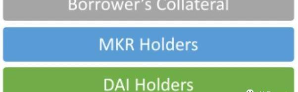 MakerDAO是迄今為止最古老的DeFi項目之一,它是一種去中心化的信用協議,可以抵押各種加密資產并鑄造債務。這筆債務以StablecoinDAI的形式存在,Maker利用外部市場力量、激勵機制和政策工具系統來維持Dai與美元1:1掛鉤關系。與銀行類似,用戶通過抵押品進行貸款。在銀行環境中,借款人可以將房子、汽車、應收賬款等作為貸款的抵押品。對于針對數字資產的貸款,貸款的價值必須始終低于抵押品價值,以保護債權人免受違約風險或清算風險,這些風險同抵押品的流動性緊密相關。為了防范這種風險,借款人可以選擇存入各種抵押資產以鑄造債務,各種資產根據其風險程度會有不同的保證金要求。流動性低、波動性高的資產大規模清算更加困難,如果其抵押品低于保證金要求,則需要更大的緩沖來保證頭寸順利平倉。讓我們舉一個保證金要求的簡單例子。目前在ETH-A池中鑄造DAI需要145%的最低抵押率。假設你存入1ETH,1ETH=4,000美元,然后你借了1,000DAI貸款。您的抵押比率是4,000/1,000=400%。如果ETH開始崩盤并跌破1,450美元/ETH,那么您的金庫將被清算。在清算期間,該協議將低于市場價格出售您的抵押品,從而激勵套利者進入并償還債務。我們如何償還債務的呢?我們無法真正收回那些發給借款人的DAI。我們在公開市場上出售其ETH抵押品以換取DAI。然后,我們將這1,000DAI發回協議以銷毀,同時關閉其未償債務余額。與此同時,套利者執行此清算過程的動機是他們在清算過程中將收到一小部分抵押品作為獎勵。這里真正酷的地方是該協議是無需許可的。沒有信用記錄檢查,沒有KYC流程,沒有任何證書;只要你滿足保證金要求,系統不管你是誰,沒有人能阻礙你。另一個很酷的功能是,由于無需許可的性質,借款人同時作為債權人和借款人。協議的另一端并沒有真正的直接交易對手。與傳統借貸系統不同的是,該違約風險是整個系統參與者共同承擔的,如下圖所示: