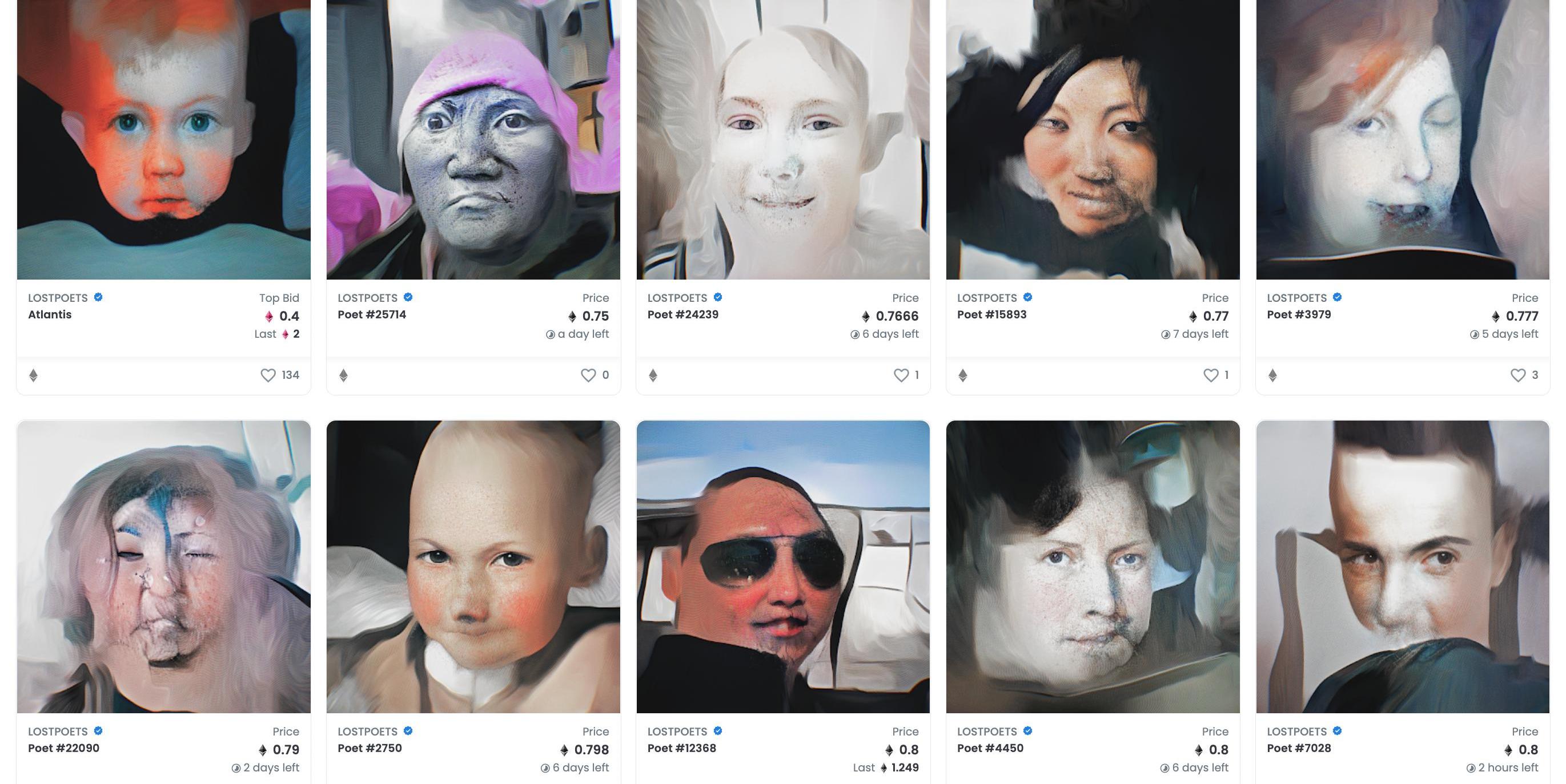 單個方塊和五個方塊同時拍賣的限量版單品TheSwitch、ThePixel,單價均超過100萬美元,該次拍賣總收入接近1700萬美元。該系列作品還包含免費贈送的限量版NFT,比如TheCube限量一件,贈送給購買立方體Cube最多的收藏家;Complexity限量100件,贈送給100位購買開放版小方塊數量最多的用戶。像積木游戲,完全相同的組件可合并成不同的NFT作品,Pak借Fungible的主題暗示了同質與非同質并非完全對立,而是可以互相轉變。合并機制也為NFT藝術創作提供了新思路。LOSTPOETS:一場文藝復興式的策略游戲