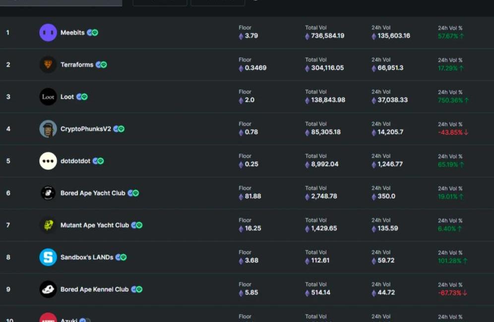 LooksrarevsOpensea20210116這里必須說明,這個判定是帶一定的主觀性的,判斷一句是Lookshare交易量前5的NFT系列沒有版稅,而這5個系列在Opensea的24HVol都排不上前50。Looksare第六的NFT系列是BoredApeYachtClub,它需要版稅2.5%,Lookshare24HVol350ETH,同期在Opensea24HVol1537ETH。