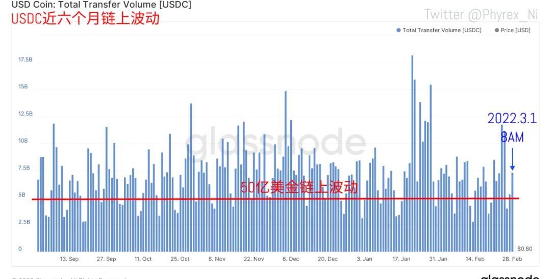 Twitter@Phyrex_Ni而實際上,面對這次的上漲反而引發出了難以想象的拋壓,涉及到了所有的持倉時間,甚至這次的單獨出貨主力都是持倉在6個月到12個月的BTC,而整體出售情況來看,短期持有者是相對拋壓最大的部分,占總量的將近1.2%。但是這次的拋售也是一件好事,不但實現了更高的換手率,而且還減少了未來的上升阻力。另外從個人角度來看,本次的購買雖然是集中在USDT和幼鯨的區域,但是并不能直接說明不是俄羅斯或者是烏克蘭的政府行為,尤其是俄羅斯,畢竟USDT的流通一樣非常的廣泛。