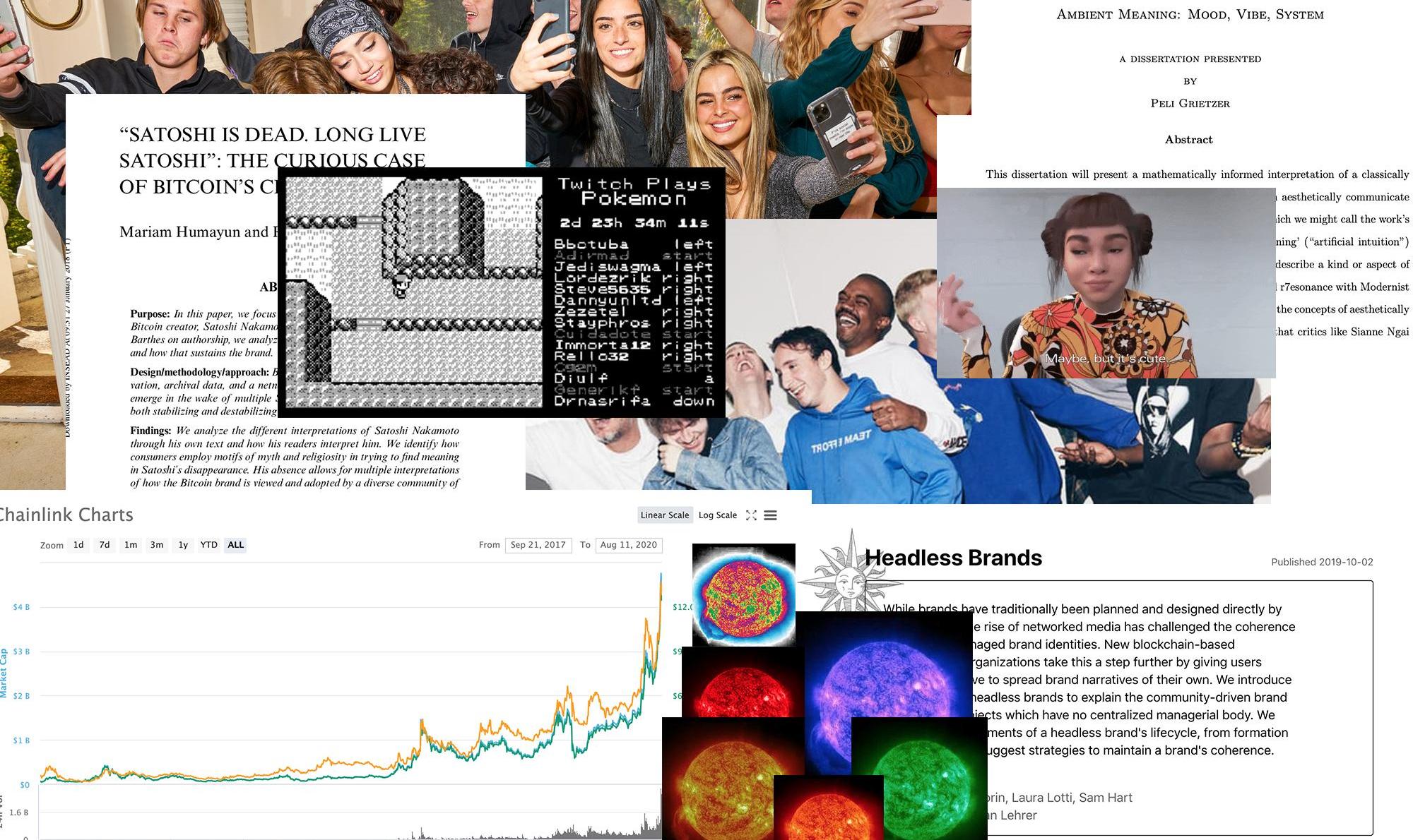 在社會深層網絡的底層世界中,小團體開始發展屬于自己的文化。它們不需要有自己的團隊貨幣,因為圖像、藝術品、音樂、話題、垃圾帖子,甚至挖苦,都能成為它們的交流媒介。同樣,小團體一般也不會設置什么內部經濟激勵措施。相反,這種充滿樂趣的交易中產生的信任、互惠互利與團隊精神,才是它們真正看重的東西。因此,小團體生產的核心就在于小團體本身產生的持續性。加密謎因學告訴我們,寫著爛貼的差勁團體能用其內部的社會框架來定義新的價值形式。謎因這類「資產」雖然不好估價,但卻能引領文化和經濟潮流。