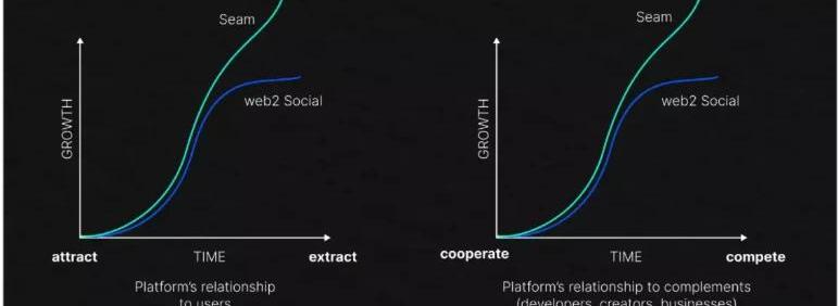 目前所有的Web2社交平臺都經歷了從“好用”到“一般”的循環。在Facebook和Instagram推出時,獲得一個賬戶并與你的朋友聯系很有趣、很低調,成為互聯網新浪潮的一部分是一件很酷的事。但最終“不酷”的事情還是發生了——隨著平臺走向變現,你被困在了廣告和新聞文章中。他們進入了價值的“提取”階段。A16Z在《WhyWeb3Matters》中有一個很好的圖表來說明這一點。當平臺“達到S曲線的頂端時,他們與網絡參與者的關系就會從正和變為零和。要想繼續發展,就需要從用戶那里提取數據并與合作伙伴展開競爭”。