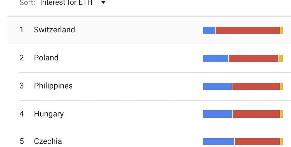 “NFT”,“ETH”和“Metaverse”在Google上搜索熱度的區域分布–2021年全球范圍統計數據來源:谷歌趨勢,NFTLabs從圖中可以看到,NFT和ETH概念全球范圍除少量地區外的都有很高的熱度。