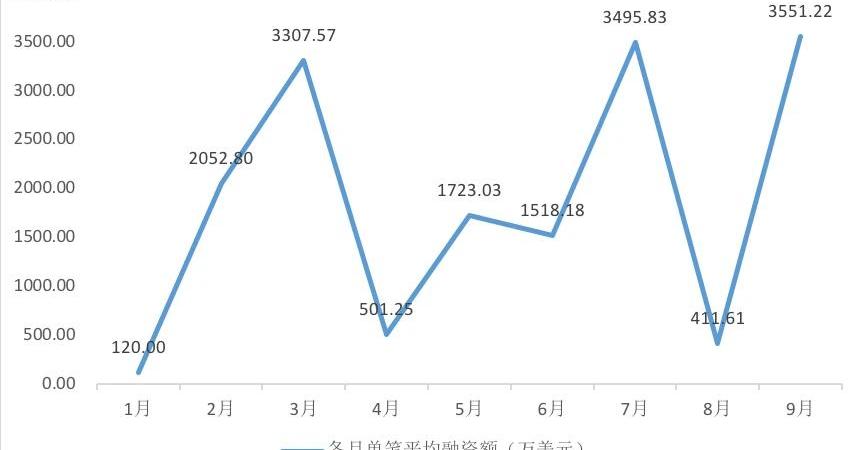 各月單筆平均融資額走勢數據來源:01區塊鏈根據已公開融資金額項目,從單月單個項目平均融資額來看,3月、7月和9月的單月平均融資額高于其他月份,其中,9月份在融資數量最高的情況下,單筆平均融資額仍接近3550萬,為今年以來單月平均融資額最高值。