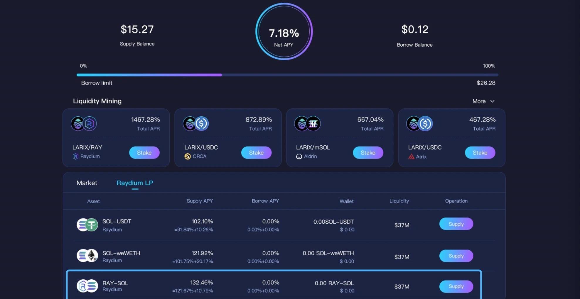 XRP/HKD-0.1%首先簡單了解下Larix和Raydium:ProjectLarix是Solana上首個元宇宙金融服務平臺,用絕對安全的方式提供包括加密貨幣,穩定幣,合成資產,NFTs在內的多種資產的金融服務。https://projectlarix.com/RaydiumProtocol是建立在Solana區塊鏈上的自動做市商,通過對接Serum去中心化交易所的中央訂單簿來實現閃電般的快速交易,共享生態內的流動性和新的流動性挖礦等收益模式。https://dex.raydium.io/帶來這一切改變的好消息是,Larix將會是Solana上第一個也是目前唯一一個,支持Raydium上的LP自帶復投功能的抵押借貸的平臺!想知道為什么Larix的LP抵押借貸能最大化你的收益嗎?我們為你總結了你需要知道的所有信息。