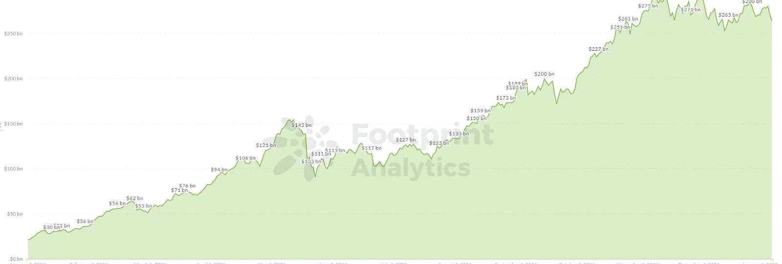 FootprintAnalytics-TotalTVLin2021其中,Layer1的各公鏈采用了各種策略來建立自己的生態系統,并從以太坊手中奪取了最大的市場份額,TVL在2021年得到爆發式的增長。