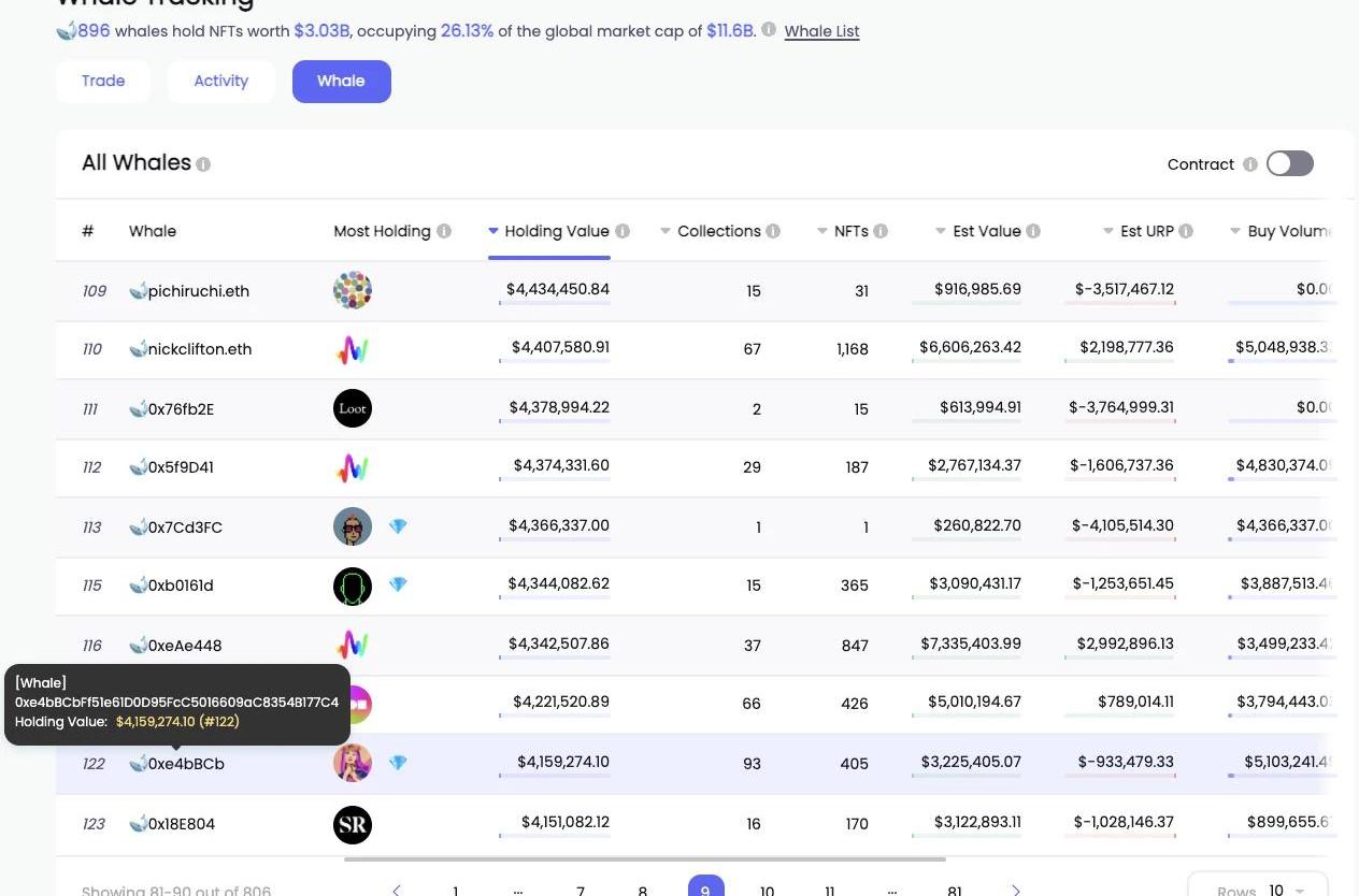 數據來源nftgo.io點擊該地址詳情頁,這個地址是在1月1號及前一天晚上mint了358只杰倫熊。同時,根據其地址詳情頁,可見這是一個新地址,進一步通過Activity的其他活動,以及與其它錢包地址的聯系。可以看出,此新錢包很有可能為一位巨鯨的小號,如下圖