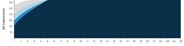 數據:https://chronobot.io/arweave/3.3.4.當前代幣流通比率目前,AR的總供應量為6459萬,其中大約22%的已發行代幣由顧問、項目團隊持有,或為未來使用和開發而持有。這表明當前的公眾持有者面臨最多24%的稀釋。這當中已流通的代幣量為5011萬左右。以下是Amber集團基于黃皮書為Arweave制作代幣供應時間表:
