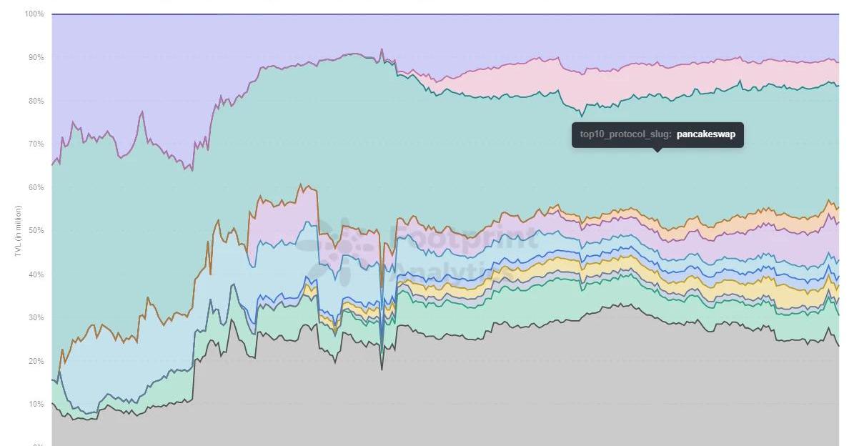 FootprintAnalytics:ProtocolsinBinance而定位Layer2的聚合器的Polygon,一方面雖然吸引了Aave,Curve等頭部項目,但是以太坊仍舊是這些項目的主要陣地,在Polygon的發展一直比較穩健而未見爆發緩慢。例如Polygon上的Aave,2021年6月份開始從38億美金跌至20億美金之后,就一直在20億美金范圍波動,沒有重回峰值。