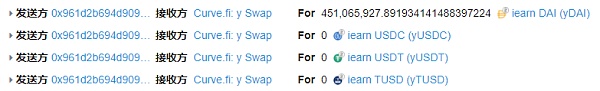447,202,022.713276945512955672yDAI+yUSDC+yUSDT+yTUSD抵押并獲取446,756,774.416766306389278551yUSD。