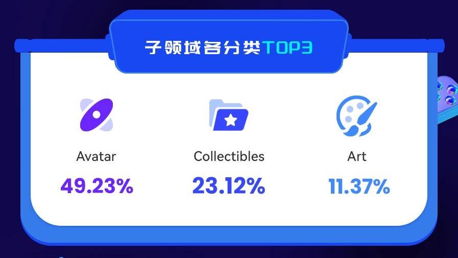 按市場占比,排前三的子領域分別為Avatar、Collectibles、Art。