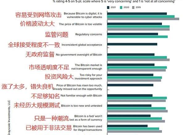 投資者正在接受比特幣,對風險的擔憂比前幾年少,其中主要是網絡攻擊、波動性和監管。在那些對比特幣不感興趣的投資者中,他們將數字資產易受網絡攻擊的脆弱性列為主要原因,占58%。超過一半的投資者(53%)將他們的不感興趣歸咎于比特幣的波動,而51%的投資者表示他們對比特幣的冷漠是由于監管。