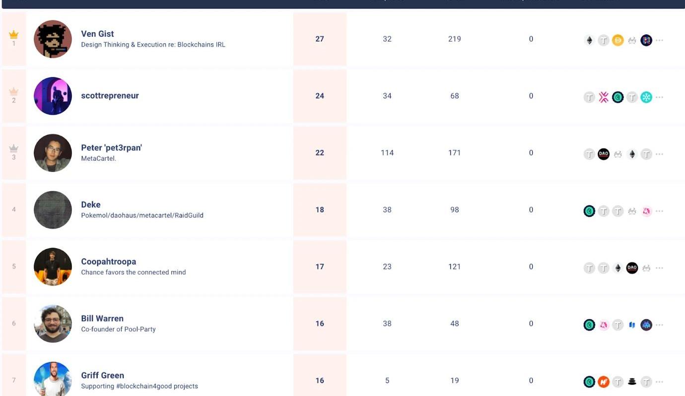 FwB代幣的最高余額您可能還想看看它們是否包括DAO領域的著名人物。這表明DAO已經獲得了該領域專家的關注。下面幾個名字: