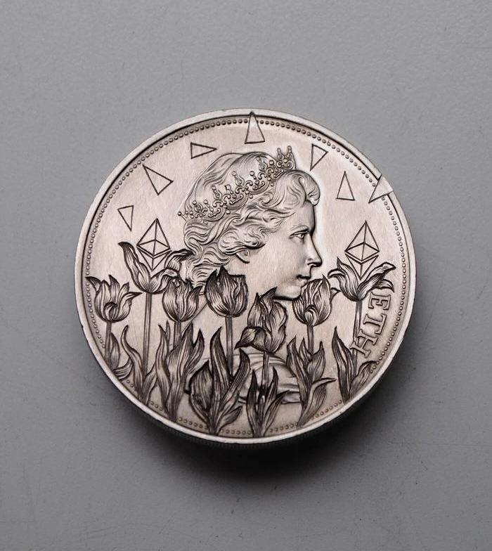 舉個例子:藝術家JohnnyDowell,又被稱為是KingNerd——用JakeElias的話說——他選擇的媒介是雕刻硬幣,這其實是非常適合與加密貨幣相融合的。JakeElias解釋道:“JohnnyDowell總是使用舊硬幣來進行創作;因為他曾表示'這些硬幣甚至連咖啡都買不了,所以我打算另辟蹊徑。'”KingNerd的展覽作品——“郁金香狂熱”是一枚刻有郁金香和ETH圖標的實物硬幣。JakeElias透露,在隨附的動畫NFT中,“郁金香是動態生長的”。就在距離HouseofFineArt畫廊幾英里之外的考文特花園,UnitLondon畫廊展出的“NFTism:NoFearinTrying”采取了另一種截然不同的方式。“有趣”的是,這里并沒有對傳統藝術世界做出讓步。一進入展廳,首先映入眼簾的是滿屏的光影色彩,展示了動畫NFT藝術作品。