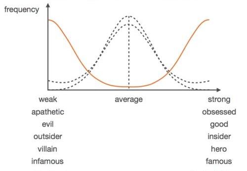 奇怪的是,古典神話與倒鐘形曲線分布重疊。有怪物,也有神。而且很多時候它們是一回事。在什么意義上創始人像神話中的英雄?關于事物創始的神話非常普遍。神話英雄真的有什么不同嗎?他們有極端的特質嗎?開發它們?他們夸大了自己嗎?其他人是否夸大了他們的故事?