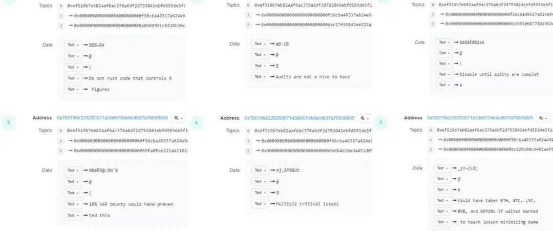 第二個THORChain利用者使用該消息作為發送到目標的消息,該消息需要通過6個交易的事件日志進行解析,并將逐行輸入數據視圖從Hex更改為Text。未來的DeFi開發者,請堅持標準的IDM方法!