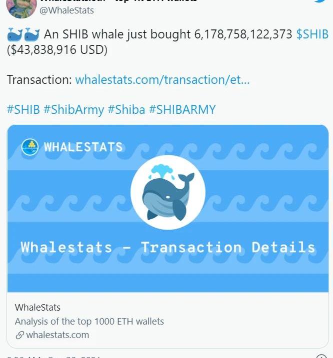 盡管這看起來似乎是一項令人印象深刻的壯舉,但現實是,以太坊上已經有數十家去中心化交易所,而ShibaSwp并沒有任何獨特之處,讓人們想要使用它來取代SushiSwp或Uniswap等其他交易所。這就是為什么ShibaSwp交易所的日成交量只有3000萬美元左右,而Uniswap的日成交量為12億美元。如果柴犬幣沒有真正的價值,他們的去中心化交易所也失敗了,那為什么這幾個月幣值漲得這么厲害?主要有三個原因,所有這些都純粹是投機性的,并不表明未來價格有任何升值的潛力。首先,9月30日,一個匿名的以太坊鯨魚購買了6萬億SHIB,在購買時價值約4300萬美元。這引起了人們對這枚代幣的極大關注,因為散戶投資者將鯨魚的買入視為他們也應該買入的跡象。