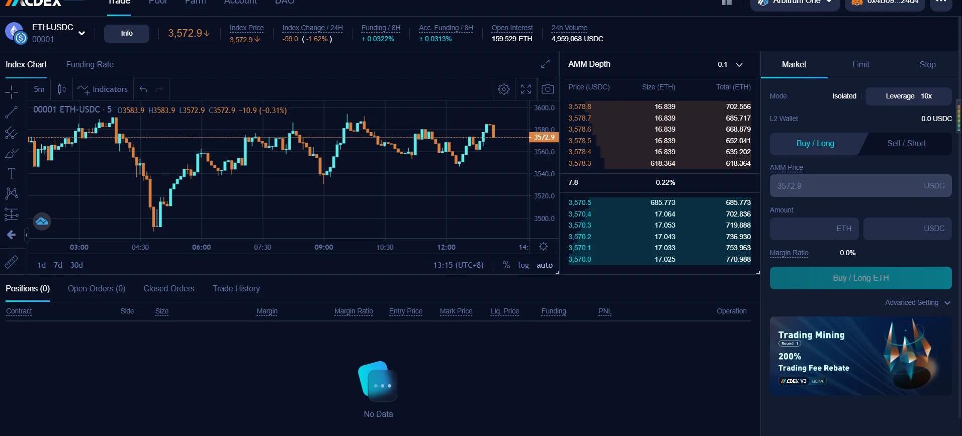 在以太坊的Layer2starkware提供服務,采用訂單簿模型進行交易,采用資金費率機制來平衡裸頭寸,其核心機制幾乎與CEX的永續合約一模一樣,并且由于采用了StarkEx引擎,用戶只有在資金轉入轉出保證金賬戶時,才需要在以太坊主網發送交易,進行交易時完全無需錢包確認,因而在交易體驗也和CEX幾乎完全一致。DYDX的功能也非常完善,限價單,深度圖,資金費率走勢應有盡有,可以與CEX相媲美。2.業務數據