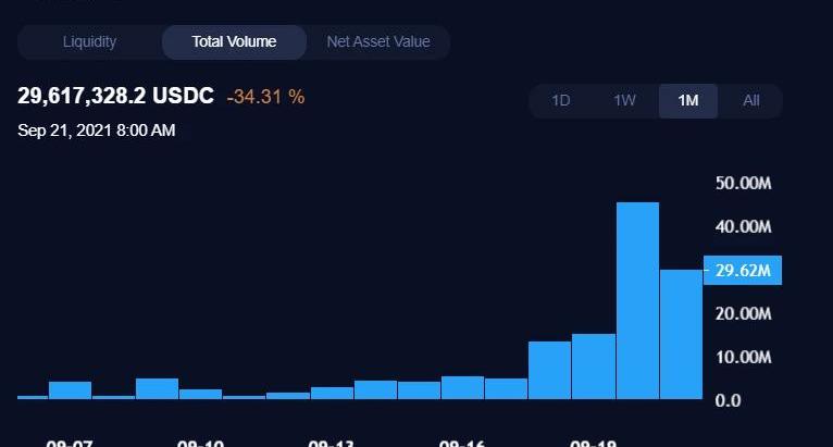 數據來源https://app.mcdex.io/pool/目前MCDEX的交易量主要來自官方認證的交易池,該池使用USDC作為保證金,支持交易ETH永續合約和BTC的永續合約,自從9月1日上線以來,累計交易量超過1.3億美元,并且交易量增幅明顯,同時LP的厚度也已經超過800萬美元,發展態勢良好。除此以外,由于LP本質上的風險和收益都不是確定的,為了免除LP做市之前對此的困擾,MCDEX在每個池中還披露了“凈資產價值”,代表每存入LP池的一枚USDC的凈值變化,其實也從側面顯示了做市的歷史盈虧情況。我們可以發現,雖然上線時間不長,但是總體而言,LP的份額價值還是不斷上升的,也就是說,LP總體是正收益,交易員總體是負收益,這也與我們的直覺相符。