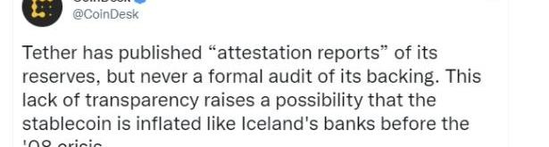 AdamBack也在明里暗里支持Tether,同時也在這條推特中對Twitter用戶@bitfinexed進行了人身攻擊。原因是顯而易見的。因為所有在BTC之上運行的金融實體和私人企業都從Tether的運作中獲益。總結"這篇文章只是試圖在暗示和錯誤信息的基礎上,延續關于Tether的虛假和陳舊的坊間傳聞,這些信息是由沒有參與或直接了解企業運作的心懷不滿的個人散播的"——Tether對于彭博社文章的回應,雅虎財經Tether再一次對那些質疑其做法的人做出了攻擊性的反應。但最重要的是,它的回應是基于這樣一個事實,即記者和那些希望得到答案和研究這個話題的個人,對企業的運營沒有直接的了解。這倒是真的。Tether公司一直在以各種精妙的方式隱藏其運營方式和商業行為。由于沒有一絲的透明度,人們自然會假設最壞的情況,在這種情況下,這些猜測往往也是事實。目前關于Tether的戰爭剛剛揭開帷幕。而當Tether崩潰時,比特幣也將注定產生巨大的波動,而這也正是BTC鯨魚游說正需要經濟支持的美國政客的目的。一個700億美元的公司僅由12個人以極其不透明的方式組成,這本身就是一個奇怪的信號。由于Tether的存在,加密貨幣行業始終存在系統性風險,但對于其他那些真正致力于基礎建設的人而言,事情并不會發生太大的變化。本文來自比推Bitpush.News,星球日報經授權轉載。