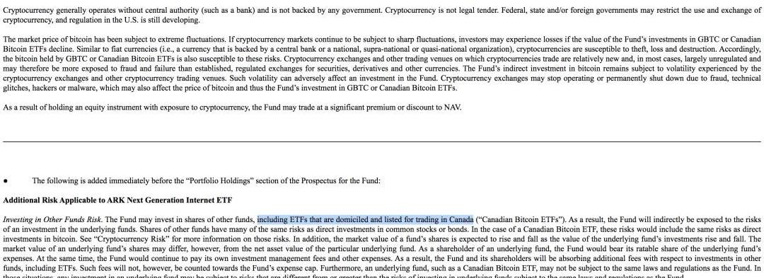 根據一份公開的SEC監管文件,ARKInvest修改了旗下基金ARKNextGenerationInternetETF(ARKW)的招股說明書,說明書寫道:“本基金可能投資于其他基金的股票,包括在加拿大注冊并上市交易的ETF”。