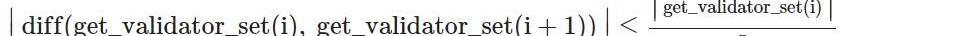 讓CONSENSUS成為一種異步安全的共識算法(例如,Tendermint、CasperFFG等)。我們假設共識算法的設計是涉及slot和view(查看視圖)的,即它在每個固定時間段嘗試達成共識時。我們還假設它把加權的驗證者集(現有的拜占庭容錯共識算法要增加這一特性是很容易的)作為輸入。在下面的設計里,我們修改CONSENSUS,使得在每次的查看中,要求做最終敲定的驗證者集都是不一樣的。也就是說,是把CONSENSUS而不是驗證者集作為函數get_validator_set(view_number:int)->Map(其中int代表驗證者余額)的輸入,該函數可以生成驗證者集的新查看視圖。get_validator_set應該具有這樣的特性,驗證者集從一個視圖到下一個視圖最多變化1/r,其中r(r=65536)是復原周期長度。更形式化來說,我們希望是這樣: