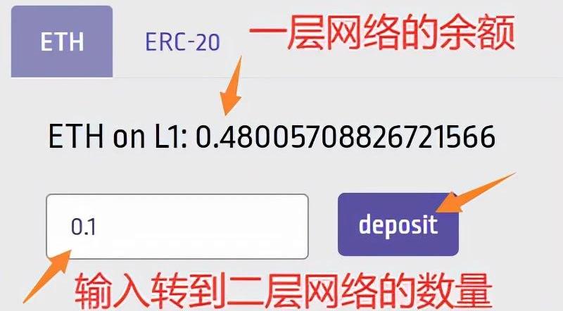 在界面左側我們看到ETH主網的余額,輸入轉到二層網絡Arbitrum的數量,然后再點擊“deposit”。