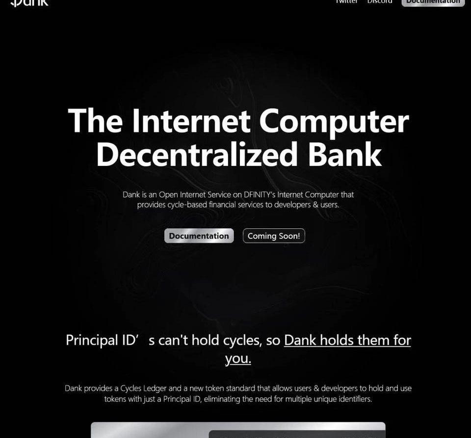 鏈接:https://psobu-piaaa-aaaad-qaagq-cai.raw.ic0.app/文檔:https://bqdjp-7iaaa-aaaad-qabgq-cai.raw.ic0.app/介紹:為開發者服務,幫助其管理gas費,并基于gas代幣cycles開展金融服務,打造去中心化銀行。DANK對cycles進行包裝并創建了一個新的標準化代幣,允許用戶和開發人員只需要一個PrincipalID,就可以在多個容器的狀態下持有或者使用cycles,極大的優化了開發中cycles的管理與容器間付費。