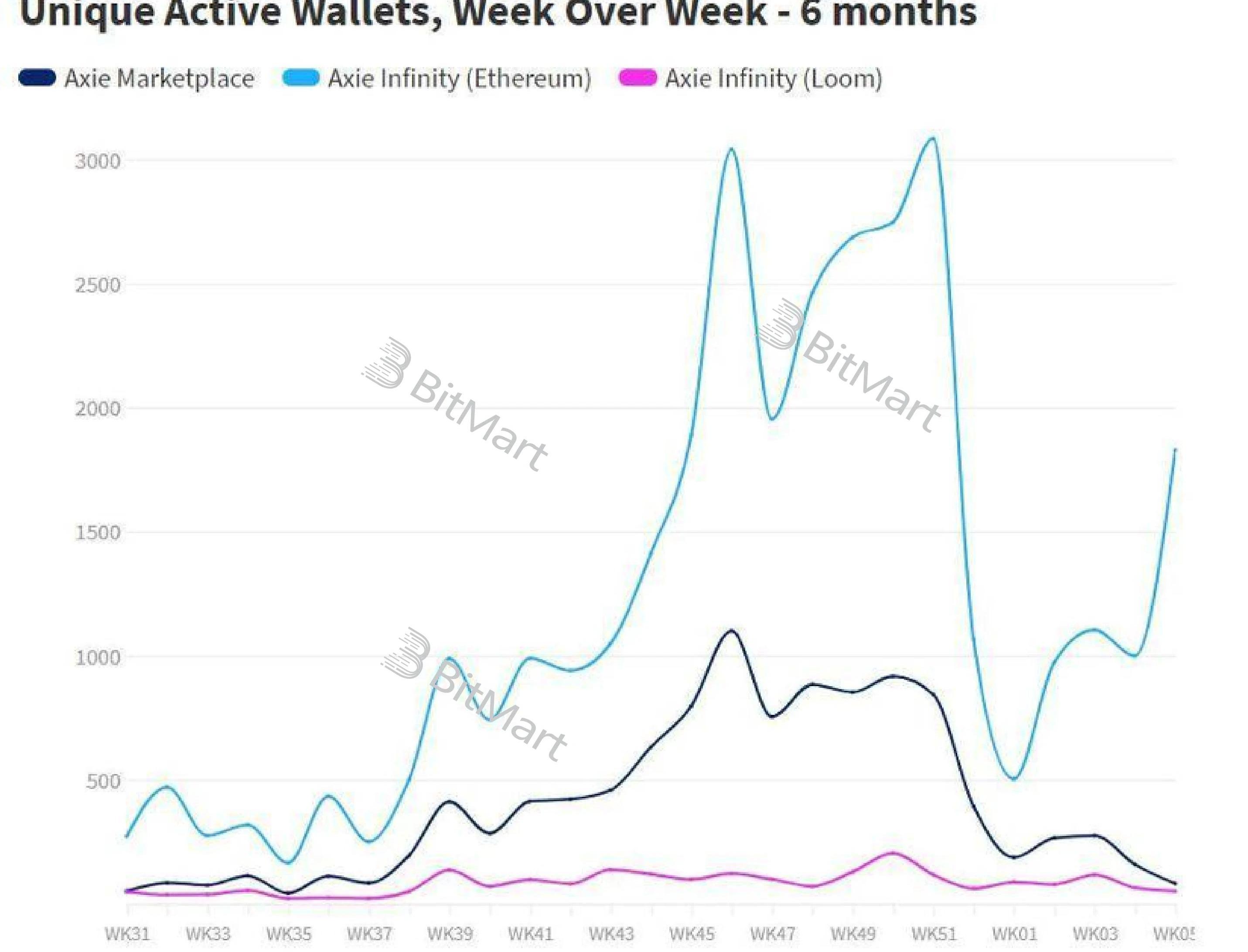 Ronin區塊鏈——AxieInfinity定制側鏈Ronin是以太坊鏈的側鏈,它的推出是AxieInfinity從2021年4月24日開始連續兩個月爆炸式增長的關鍵催化劑,Axie一月活躍用戶只有523位,而后日活用戶從4月的38,000人暴增至252,000人。