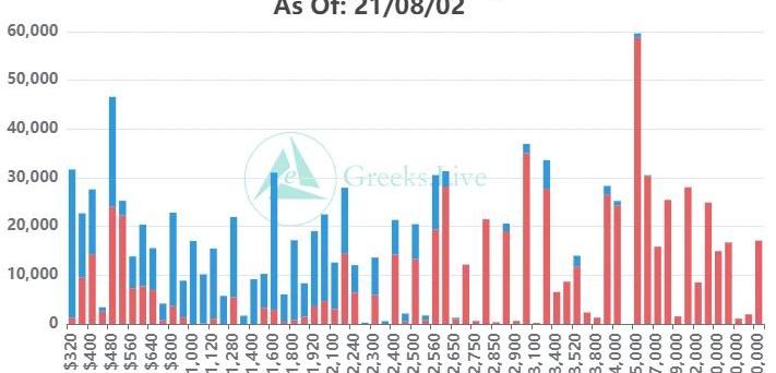 播報數據由Greeks.live格致數據實驗室和Deribit官網提供。數字貨幣市場進入震蕩調整,總體期權成交熱度是下降的,但比特幣大宗看漲期權的巨額成交扭轉了成交量趨勢。Deribit比特幣年度深虛看漲期權今天成交超4000張,大家可以在正文內直觀的看一下成交分布,成交主要以年底140000看漲和200000看漲為主。Reddit粉絲幣價比80.9,七日粉絲復利年化增速24.5%以上參數為個人觀察市場熱度使用的指標,詳細內容可以參見之前的文章《幣的估值指標:Reddit粉絲幣價比》期權持倉量13.2萬張,價值52億美元,期權成交量1.2萬張。10d72%30d61%90d95%1Y77%各標準化期限隱含波動率:今日:1m82%,3m83%,6m83%,DVol90%8/1:1m82%,3m83%,6m83%,DVol90%比特幣價格在40000美元還是有壓力的,市場下跌并沒有澆滅看多情緒,主要期限期權IV穩定,各期限期權Skew有繼續負偏的趨勢。看漲期權大宗的巨額成交也驗證了這一點。