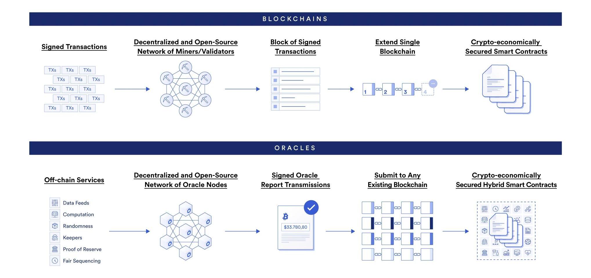 混合型智能合約為高級的去中心化應用結合了鏈上和鏈下基礎架構。本文將深入探討區塊鏈和預言機的目標和基礎架構,并詳細分析二者之間的異同之處以及協同效應。區塊鏈和預言機在目標和基礎架構維度上的比較分析
