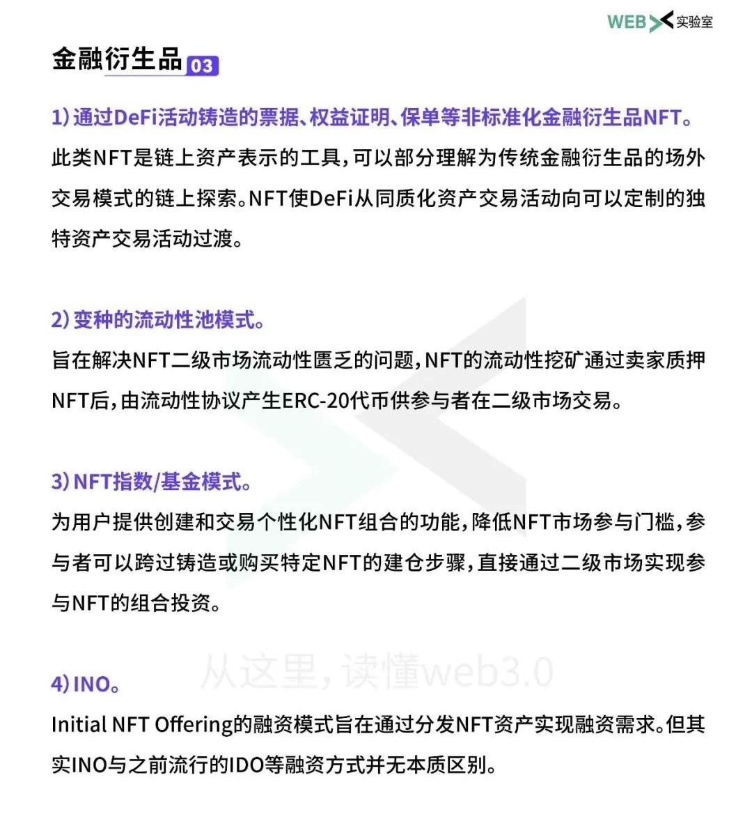 XRP/HKD-1.1%NFT為加密世界帶來了稀缺性和多樣性,同時也帶來了新的泡沫,但NFT的火熱的確為區塊鏈帶來了嶄新的玩兒法和應用場景。目前的NFT的稀缺性都是人為創造的,而真正能將一件事物推價值向高峰的,一定是極高的使用價值加上自然形成的稀缺性,兩者混合創造出“有價值的稀缺品”。NFT的廣泛應用也撬動了加密市場多年空轉的經濟體系,給區塊鏈帶來了另一種形式的價值,讓區塊鏈從一個純理性的金融系統向感性和主觀的人文世界靠攏。NFT的用例多集中于游戲、藝術品、元宇宙、版權、社交等領域,元宇宙可能是NFT目前最火熱也是最宏大的應用場景,元宇宙內需要承載用戶數字資產和個人數據的可靠載體和穩定公平的經濟系統,這便是NFT預想中的用武之地。目前頭部項目的NFT價值密度很高,其余復雜應用雖然遍地開花,但體量非常小,可能還需要經歷幾輪洗禮和淘汰。而未來NFT與DeFi和CeFi經濟系統的大規模交互可能引爆下一輪熱點。