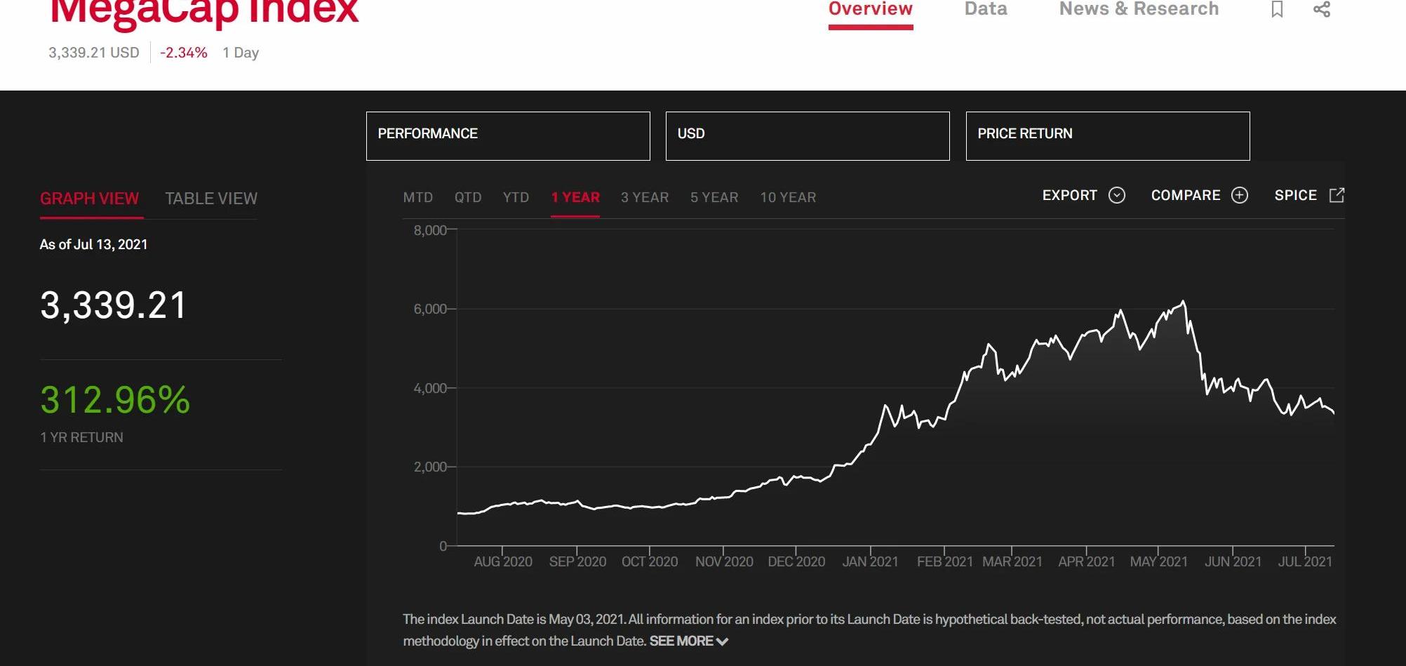LargeCap指數·標普加密貨幣Ex-LargeCap指數——不包括LargeCap指數的成分。·標普加密貨幣MegaCap指數——衡量比特幣和以太坊數字資產的表現。