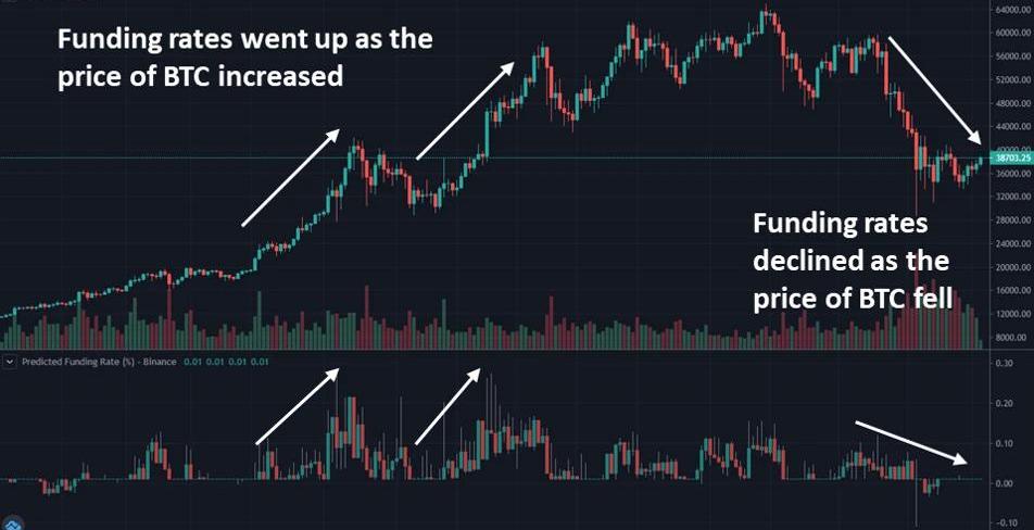 以幣安期貨為例,資金費率往往以8小時利率顯示。交易者使用這些合約獲得特定代幣的杠桿敞口,因為他們只需要拿出總合約價值的一小部分作為抵押。與傳統期貨合約不同的是,期貨價格最終會在結算時與合約價格趨同,永續合約利用資金費率來確保永續合約價格和現貨價格在趨同的水平線上。另一種理解資金費率的簡單方法是將其可視為向套利者支付的款項,以確保永續價格與潛在的現貨價格差不多。但波動性較大時,永續價格可能會偏離潛在的現貨價格。根據偏離的影響度,資金費率既可以是正,也可以是負。?當永續價格高于現貨價格時,就會出現正的資金費率,市場參與者是看漲的,做多的交易者將不得不為空頭頭寸買單。?當永續價格低于現貨價格時,就會出現負的資金費率,市場參與者看跌,做空的交易者將不得不為多頭頭寸買單。資金費率通常由兩部分組成:利率和溢價。利率一般固定在每個融資區間的0.01%(通常頻率是每8小時),而溢價取決于現貨價格和現貨價格之間的差異。由于利率固定在每個區間0.01%,0.01%往往被視為“市場中性”的資金費率。從這個角度看,資金費率可以被用作衡量某種資產過熱或超賣程度的標準。它們與市場情緒有何關聯?資金費率傾向于與相關資產的總體趨勢一致,即隨著相關資產價格的上漲,資金費率傾向于為正值并不斷上升。