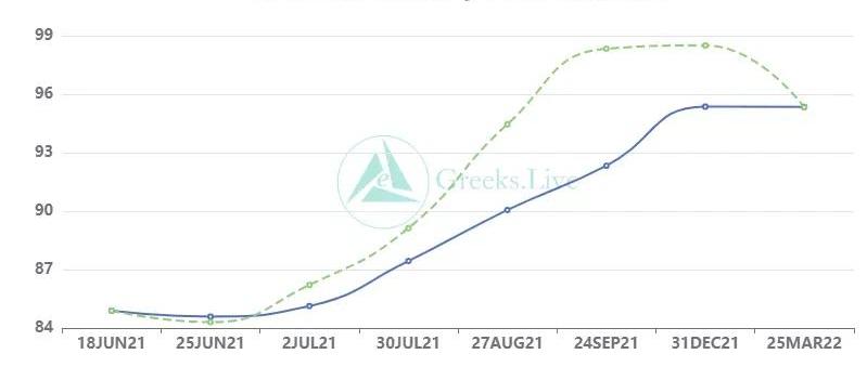 播報數據由Greeks.live數據實驗室和Deribit官網提供。Greeks.live格致數據實驗室正式推出了Data.Greeks.live數據看板,之后的播報都會采用GreeksDataLab和Deribit官網提供的數據。主流數字貨幣今天遇到了一波下跌,比特幣價格再次逼近橫盤區域下方,而月初表現不錯的以太坊下跌到了月內新低,壓力轉移到了以太坊一邊。期權成交量3.6億美元,期權持倉量為63億美元。10d106%30d110%90d92%1Y73%各標準化期限隱含波動率:今日:1m82%,3m87%,6m94%,DVol98%6/11:1m86%,3m90%,6m95%,DVol100%比特幣價格跌破36000USD的短期支撐,成交量下降的比較明顯,這體現的是資金流入不足,同時比特幣各期限IV仍然是下跌趨勢。