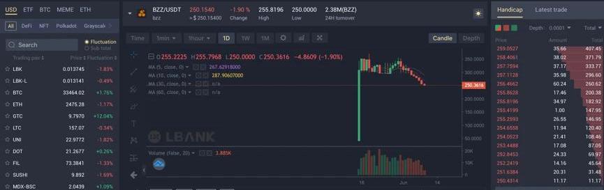 目前交易所上普遍交易的都是BZZ的期貨,而從LBank交易平臺上顯示的數據來看,BZZ期貨已經漲到了250U上下。