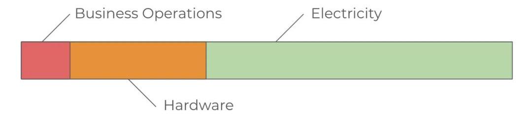 人們說“比特幣浪費能源”的時候,他們的意思是需要用電來驅動生產比特幣區塊的挖礦設備;諷刺的是,一方面,這部分能源顯然不是比特幣網絡運行所用能源的全部,而只是一部分;另一方面,這部分又是最直接用來保護區塊鏈的部分,因此是最少浪費的。要全面計量比特幣的碳足跡,我們也要考慮硬件成本以及正常的商業運營的成本。后面這兩類成本更模糊,更難以估計。但要理解整個系統會造成什么影響,它們也是同樣重要的。