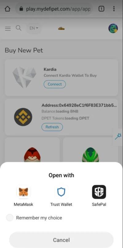 訪問以下鏈接登陸NamiExchangehttps://nami.exchange然后在幣安或其他加密貨幣交易所購買USDT,接著轉回到NamiExchange。您可以按照以下路徑兌換購買DPET:USDT>VNDC>DPET拿到DPET代幣之后,即可將所有代幣轉移到KardiaChainWallet錢包。在KardiaChainWallet錢包中存入DPET和KAI代幣之后,您可以將錢包連接到MyDeFiPet網站,即可使用KAI錢包去“買蛋”了,價格目前還比較低。