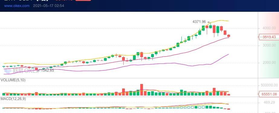 1.現貨市場OKEx行情數據顯示,上周ETH價格一度上漲突破4300美元,而后價格急轉直下,周內收于3631美元,環比下跌6.3%。