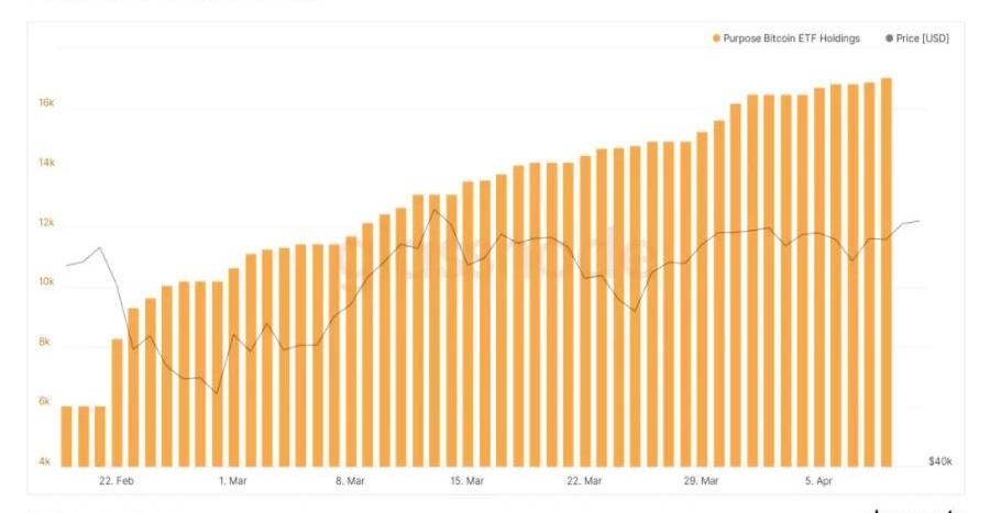 自從2013年Winklevoss兄弟首開比特幣ETF的濫觴,9年間每年都有不同的機構提出比特幣ETF申請,但都無一例外,均以失敗告終,甚至都成了一個“通過永遠在明年的魔咒”。終于在2021年2月18日,這一“魔咒”被加拿大Purpose投資公司打破,它推出了世界第一支比特幣ETF——PurposeBitcoinETF,并在多倫多證券平臺掛牌,發行第一天成交量就達到了近4億美元,足見市場對比特幣ETF的期盼。根據Glassnode數據,截至2021年4月10日,加拿大PurposeBitcoinETF持有的比特幣數量已經達到17013枚,增長速度驚人。